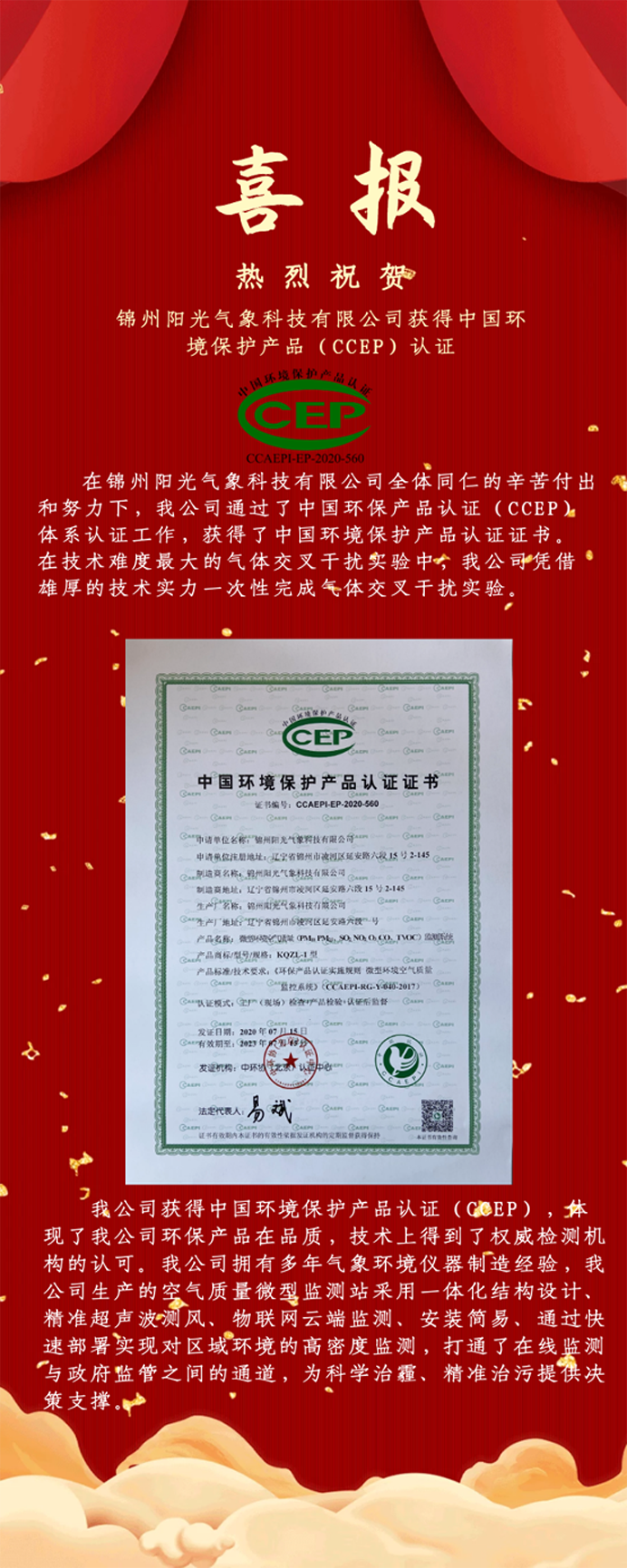 喜報!祝賀我公司獲得中國環(huán)境保護產(chǎn)品(CCEP)認(rèn)證