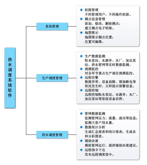 供水調(diào)度系統(tǒng)軟件集水源地取水、水廠制水、管網(wǎng)配水、大客戶用水等多環(huán)節(jié)監(jiān)控于一身,對供水各個環(huán)節(jié)進(jìn)行統(tǒng)一管理,并可對供水系統(tǒng)工況進(jìn)行科學(xué)統(tǒng)計和智能分析,為供水系統(tǒng)的高效調(diào)度和優(yōu)化運行發(fā)揮了重要作用。