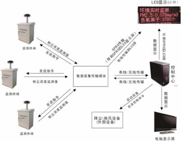 本系統(tǒng)以有線232傳輸方式為紐帶,組建現(xiàn)場端到監(jiān)控平臺的一個城域網(wǎng),實現(xiàn)各監(jiān)控點與監(jiān)控平臺的連接。現(xiàn)場端設備按照國家相關技術協(xié)議將實時粉塵監(jiān)測濃度指數(shù)傳輸?shù)奖O(jiān)控平臺,監(jiān)控平臺對監(jiān)控數(shù)據(jù)進行存儲、統(tǒng)計、分析、處理,為重點區(qū)域環(huán)境管理提供數(shù)據(jù)支持和決策依據(jù)。