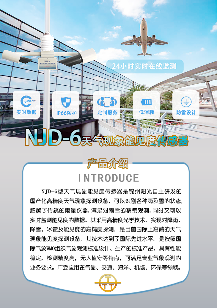 - NJD-6型天氣現(xiàn)象能見度傳感器是錦州陽光自主研發(fā)的國產(chǎn)化高精度天氣現(xiàn)象探測設備,可以識別各種雨及雪的狀態(tài),超越了傳統(tǒng)的雨量儀器,滿足對雨雪的精密觀測,同時又可以實時監(jiān)測能見度的數(shù)據(jù)。