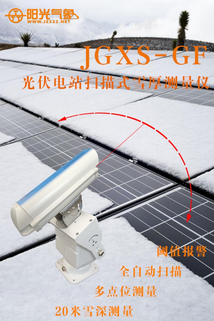 進入冬季,光伏電站如果遇到雪天,光伏板上就會積雪,雪的存在會使太陽光被反射,從而使得光伏板的發(fā)電量受到影響。雪重也會增加光伏組件的承重,可能造成光伏組件的變形或損壞,影響光伏組件的壽命和性能。此外,積雪也會使光伏板表面溫度下降,從而減緩電流的流動速度,造成電流的輸出不穩(wěn)定。因此,雪天對光伏發(fā)電的影響是復(fù)雜的,及時準確地監(jiān)測光伏組件表面的積雪情況是非常必要的。JGXS-GF光伏電站掃描式雪厚測量儀是我公司新研發(fā)的一款專門針對光伏電站組件表面積雪厚度進行動態(tài)測量的儀器。