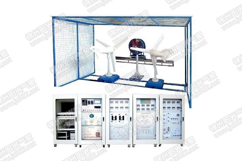 本系統(tǒng)由模擬風(fēng)系統(tǒng)、模擬風(fēng)控制系統(tǒng)、離網(wǎng)逆變系統(tǒng)、充電控制系統(tǒng)、負(fù)載系統(tǒng)和風(fēng)能控制系統(tǒng)組成;其中有2個(gè)被控對(duì)象和5個(gè)控制柜組成。模擬風(fēng)力發(fā)電系統(tǒng)用4000w的鼓風(fēng)機(jī)模擬自然風(fēng),其風(fēng)力大小可以通過變頻器控制鼓風(fēng)機(jī)轉(zhuǎn)速來完成,PLC采用PWM模式對(duì)直流減速電機(jī)進(jìn)行調(diào)速控制;鼓風(fēng)機(jī)在交流電動(dòng)機(jī)的驅(qū)動(dòng)下左右移動(dòng),左右旋轉(zhuǎn)以改變風(fēng)吹方向,以模擬不同風(fēng)速風(fēng)向下的發(fā)電效果風(fēng)力風(fēng)向檢測(cè)裝置檢測(cè)風(fēng)力大小及方向;發(fā)電風(fēng)車實(shí)時(shí)跟蹤發(fā)電。發(fā)電風(fēng)車還配有葉片轉(zhuǎn)速檢測(cè)裝置,在計(jì)算機(jī)上實(shí)時(shí)顯示其運(yùn)轉(zhuǎn)狀況及相應(yīng)參數(shù)。